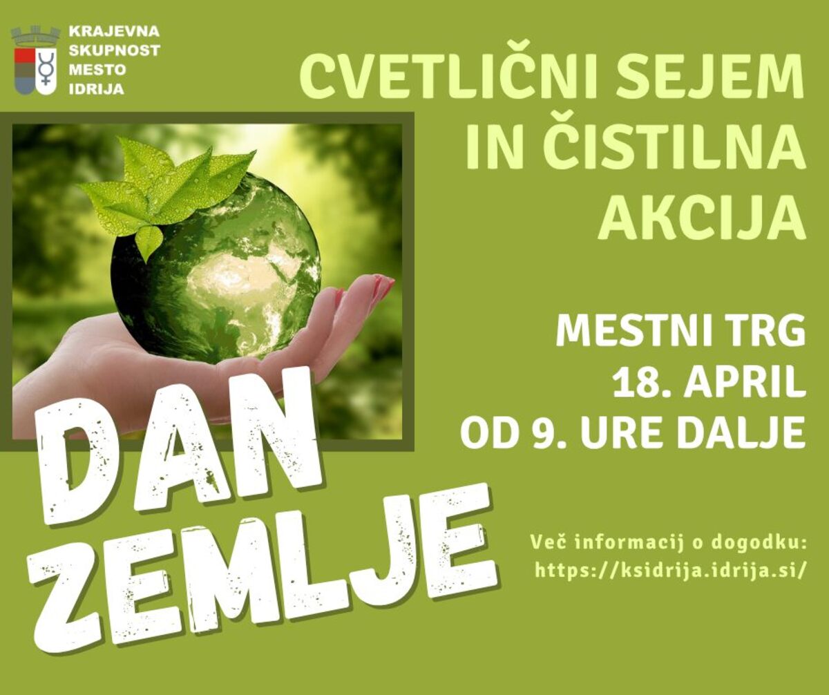 Krajevna skupnost Mesto Idrija obvešča vse krajanke in krajane, da tudi letos organizira tradicionalno prireditev CVETLIČNI SEJEM / DAN ZEMLJE, ki bo potekala v soboto, 18. aprila 2026, med 9. in predvidoma 12. uro na glavnem mestnem trgu v Idriji.