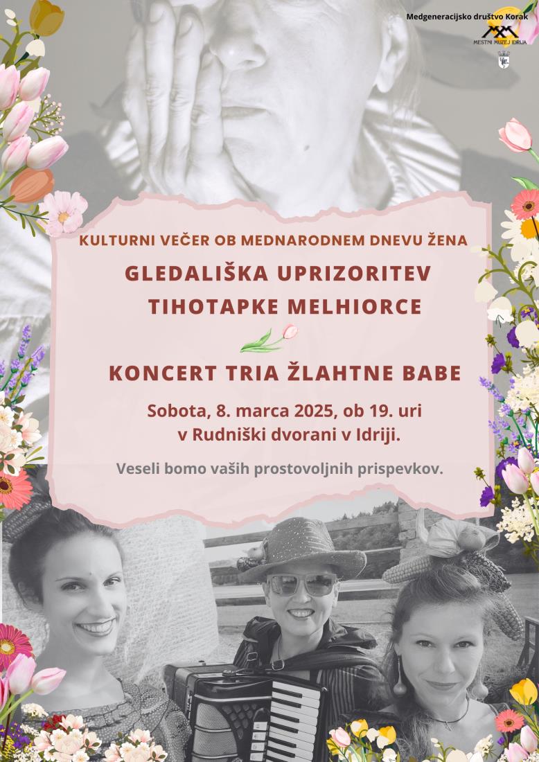 Kulturna prireditev vključuje gledališko uprizoritev zgodbe o tihotapki, ki je s svojo neomajno voljo kljubovala okoliščinam: »Ne bojim se ne hudiča ne biriča!« – Pregon tihotapke Melhiorce v izvedbi igralke Metke Pavšič, in koncert izjemnega tria Žlahtne babe, ki prepleta ljudsko in avtorsko glasbo in vas bo očaral s svojo energijo in virtuoznostjo.
