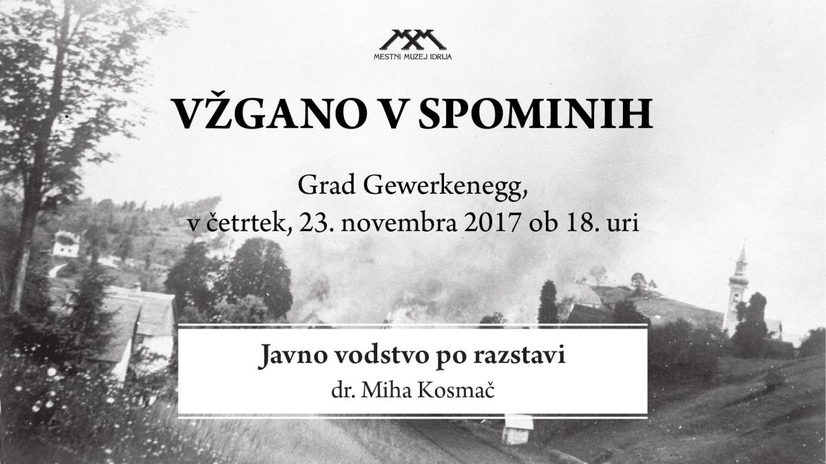 Razstava Vžgano v spominih, ki je na ogled v Mestnem muzeju Idrija na gradu Gewerkenegg do 30. novembra 2017, vsak dan od 9. do 18. ure, se počasi izteka.