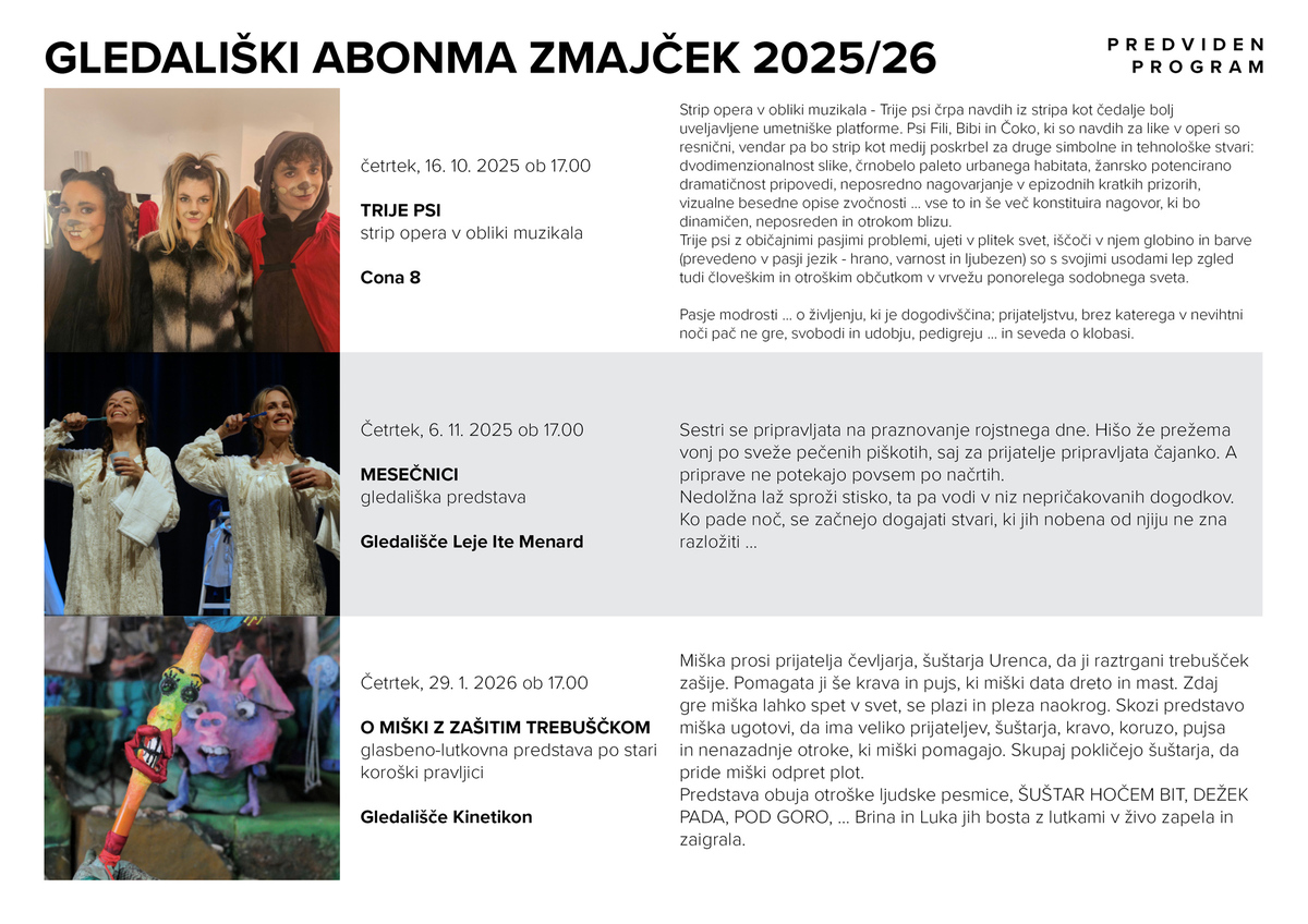 VPIS V GLEDALIŠKI ABONMA ZMAJČEK ZA ABONMAJSKO SEZONO 2025/2026