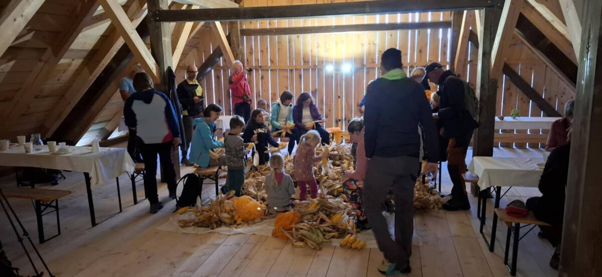 Popoldne ob 15.uri pa se je začelo dogajati na domačiji pr’Ivaniš, kjer je udeležence pričakal velik kup neolupljene koruze, pripravljen za ličkanje oziroma majenico, kot se temu jesenskem opravilu reče po starem. Dogodek je privabil številne obiskovalce, med njimi tudi pohodnike in otroke, ki so veseli brskali po kupu koruze in iskali skrite zaklade. V sproščenem, veselem vzdušju so ob zvokih harmonike in kitare ter domači pogostitvi in pogovoru obudili spomine in stare zgodbe ter s tem pomagali ohranjati košček naše dediščine.