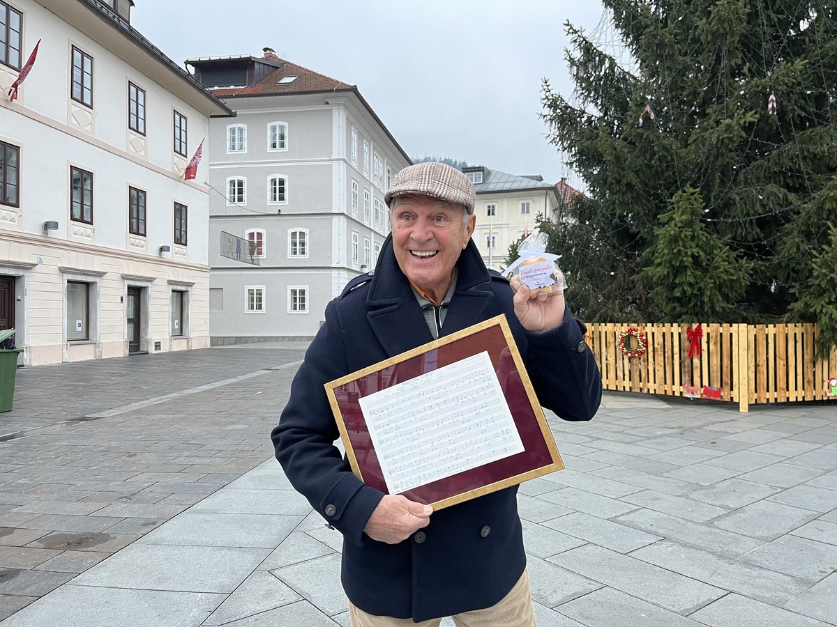 Danes zjutraj so na Občini Idrija doživeli zanimivo srečanje. Obiskal jih je namreč solopevec Dušan Kobal, rojen sicer v Vipavi, ki je precejšen del svojih otroških in mladostnih let preživel v Idriji. Nanjo ga vežejo zelo lepi spomini, zato je v zahvalo mestu in njegovim ljudem napisal pesem z naslovom Poklon Idriji, zato je danes uokvirjen notni zapis na prednji strani, s kratkim utrinkom o Idriji in njenih prebivalcih na hrbtni strani izročil idrijskemu županu Tomažu Venclju.