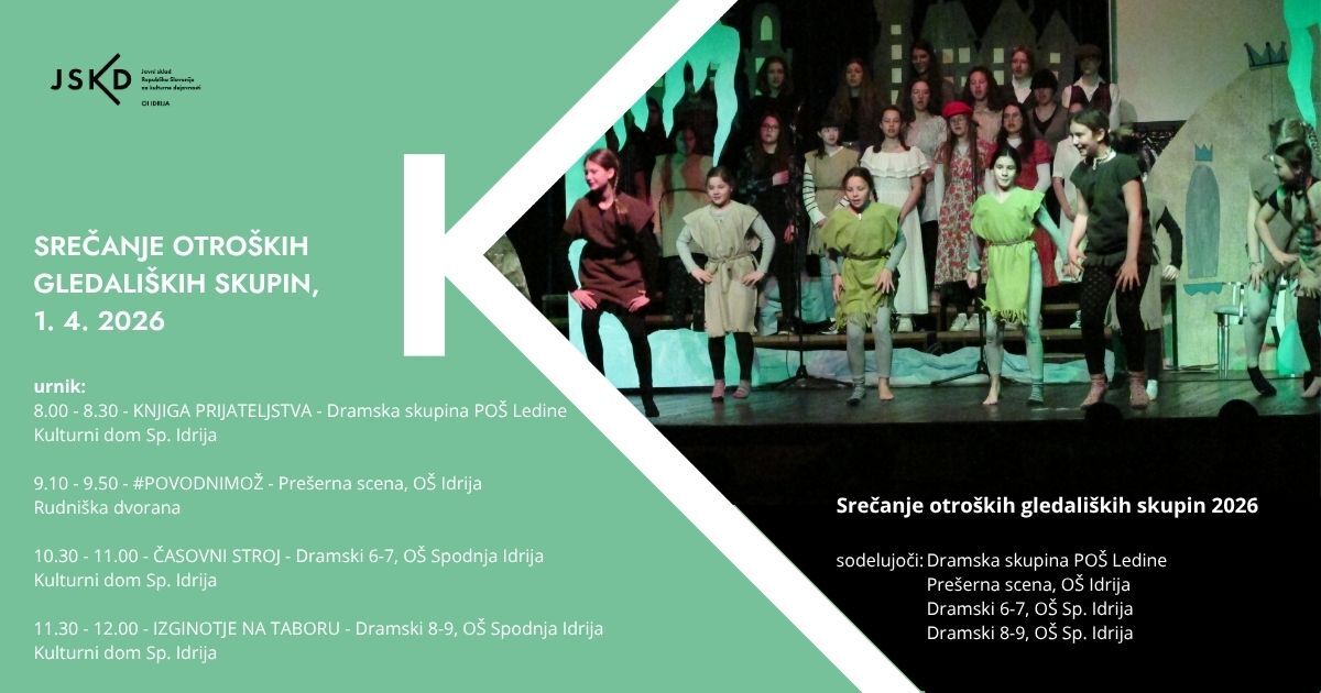 9.10. – 9.50 - #POVODNIMOŽ – Prešerna scena OŠ Idrija