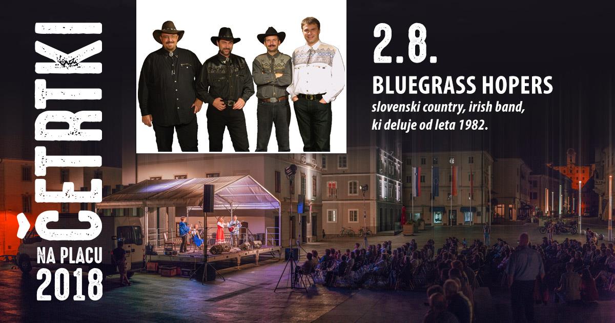 Vabljeni na koncert skupine BLUEGRASS HOPERS v sklopu Četrtkov na Placu. V četrtek, 2.8.2018 ob 20:30 na Mestnem trgu v Idriji. Slovenski country, irish band, ki deluje od leta 1982.