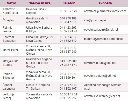 Več informacij o sodelujočih odvetniških pisarnah najdete na http://www.odv-zb.si.