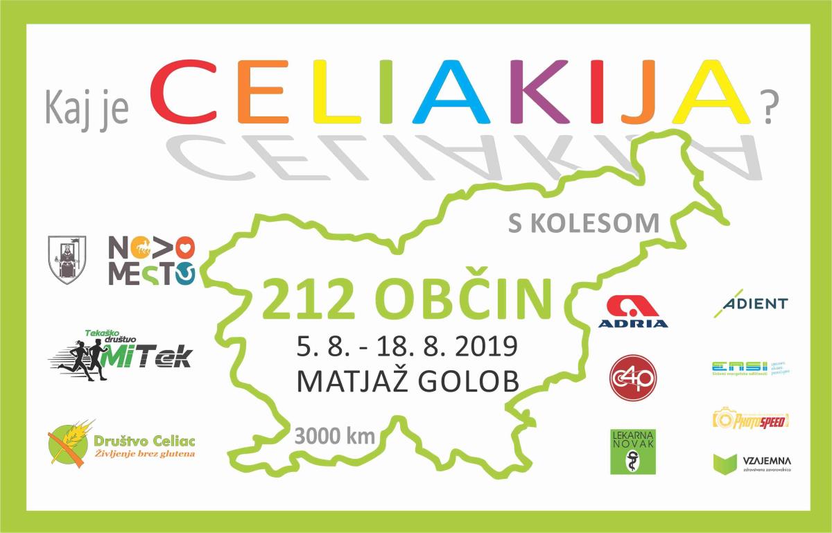 Matjaž Golob bo v 14 dneh večkrat prekolesaril Slovenijo in obiskal vseh 212 občin. Prekolesaril bo 3000 km in 40.000 višinskih metrov (mv) v 14. etapah bo prekolesaril po 200 km in do 3500 vm ter pri tem obiskal tudi do 22 občin na dan. Kolesarjenje je namenil osveščanju o celiakiji in izzivih bolnikov s celiakijo pri vsakdanjem življenju brez glutena.