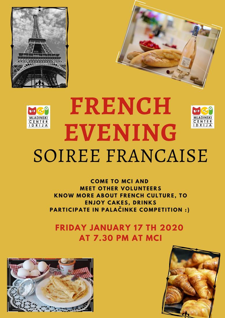 Letos sta to dve Francozinji in v Idrijo sta za to priložnost povabili tudi druge mednarodne prostovoljce, ki se trenutno nahajajo v Sloveniji. Pripravili bosta večer francoskih običajev in nam povedali, kakšno je (bilo) življenje v Idriji zanju.