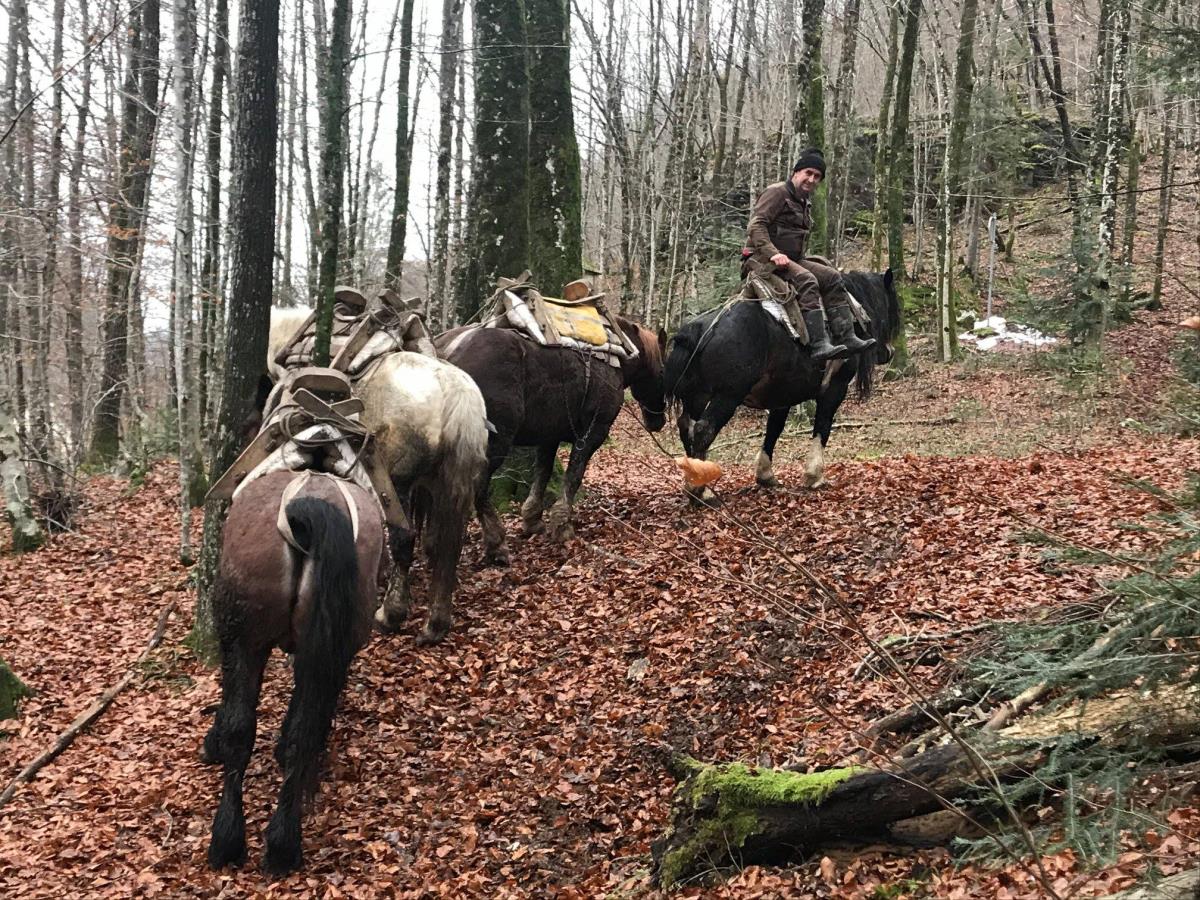 Foto: Tadej Rupnik - Konji pasme bosanski konj so nepogrešljivi pri spravilu lesa z območij, kamor traktor ne more.