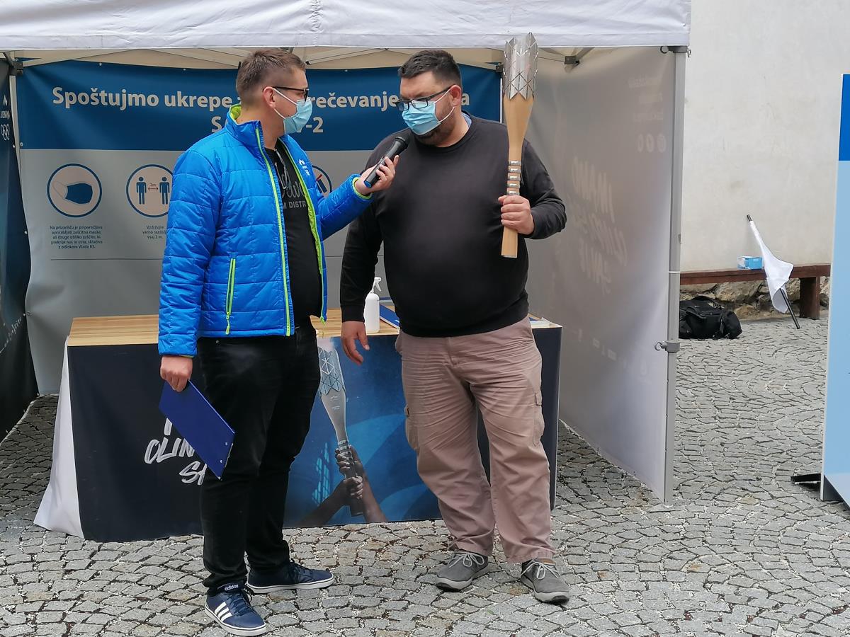 Na dvorišče gradu Gewerkenegg pa je slovensko baklo ponesel strelec Vladimir Kržišnik, ki je bil v svoji športni karieri še za časa bivše države več kot deset let član državne paraolimpijske reprezentance. Na grajskem dvorišču je potekal osrednji dogodek ob sprejemu slovenske bakle v Idriji, na katerem je ob prisotnosti organizatorjev tega vseslovenskega projekta ter idrijskih športnikov zbrane nagovoril župan Tomaž Vencelj.