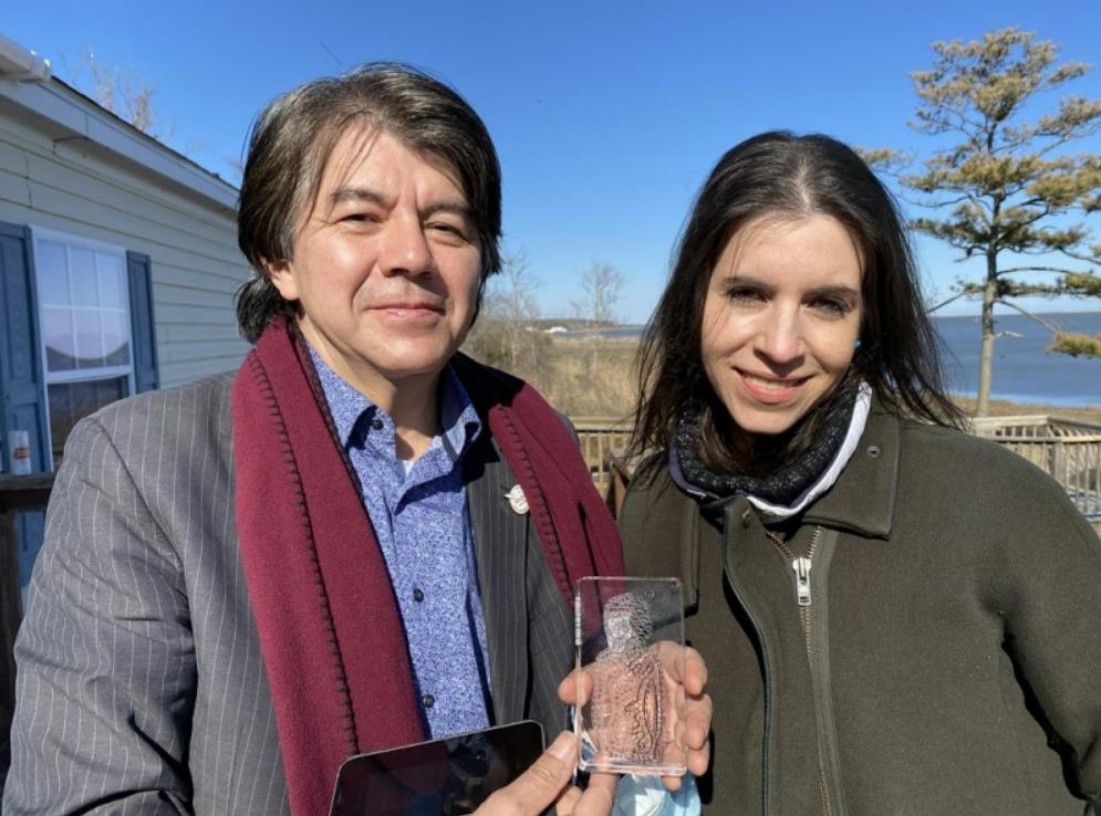Foto: Bernard Foing, predsednik MoonGallery Foundation in LUNEX Lunar Explorers, ter umetnica Eva Petrič. (Fotoarhiv Eve Petrič)