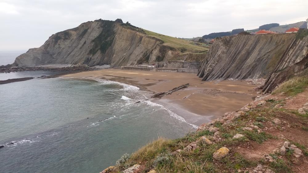Zadnji dan je bil terensko obarvan. Razdeljeni v dve skupini (geoznanstveniki in negeoznanstveniki) smo si ogledali glavne znamenitosti Geoparka Basque Coast. Prav vsi pa smo bili fascinirani nad čudovito obalo vzdolž Biskajskega zaliva in nad pomenom neprekinjenega profila flišnih kamnin od spodnje krede (srednji zemeljski vek oz. mezozoik) do eocena (mlajši zemeljski vek oz. kenozoik) na določevanje mej med različnimi geološkimi obdobji in na geoznanost na splošno. Obe skupini sta si ogledali profil v Zumaii, kjer svoje znanstvene raziskave opravljajo številne ekipe s celega sveta. V profilu je namreč vidna meja med kredo in terciarjem, torej med starim in novim zemeljskim vekom. Tudi tukaj so dokazali množično izumrtje organizmov nad to mejo ter tako potrdili teorijo o padcu kometa, saj so na vrhu te tanke nekaj milimetrske plasti našli povečane količine iridija. Spomnimo vas, da je z omenjenim dogodkom povezano tudi izumrtje dinozavrov ter številnih drugih organizmov, ki so takrat naseljevali kopno in morje.
