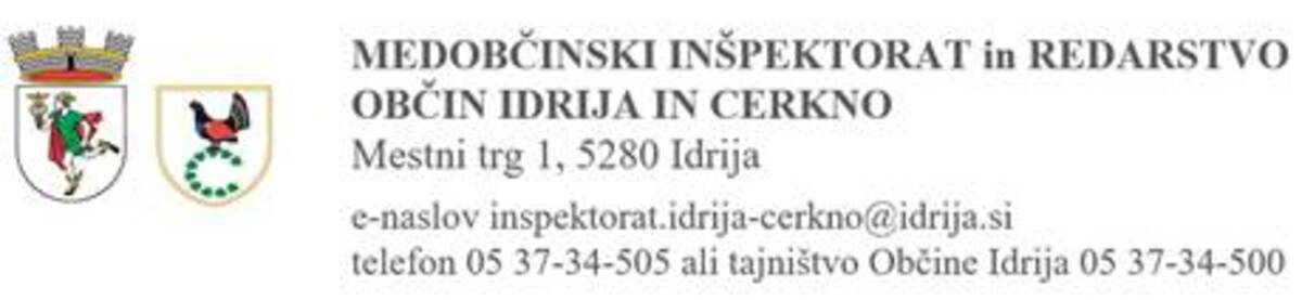 Pobude za inšpekcijski nadzor in pobude s področja občinskega redarstva lahko občani posredujejo tudi po elektronski pošti na inspektorat.idrija-cerkno@idrija.si.