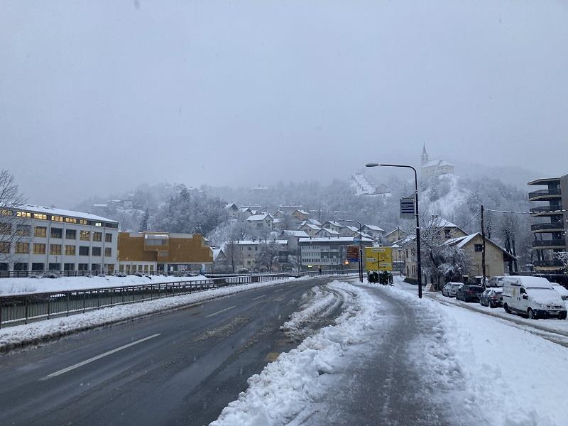 Obilno sneženje, ki se je začelo ponoči in še traja, povzroča precej nevšečnosti zlasti na prometnicah, tudi na Idrijskem.